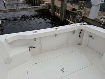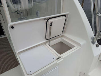 The cabin features teak finishes, a forward berth, convertible dinette with pop-up bunk, full galley, private head, and air conditioning for comfort. Up in the helm/deck you’ll find updated Garmin electronics, outriggers, livewell, fishboxes, rod holders, tuna door, and a Marlin tower—everything needed for serious fishing.