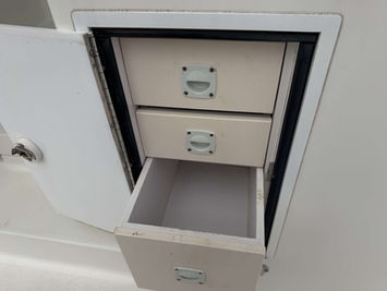 Galley: Nova Kool refrigerator, corian top with sea rail, Sharp microwave, Corian sink & plenty of cabinets/drawers